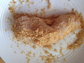 I used a coating that wouldn't need extra fat, and baked the chicken instead. I must say...it's one of the few recipes that mine looked like the pictures I saw in the cookbooks.